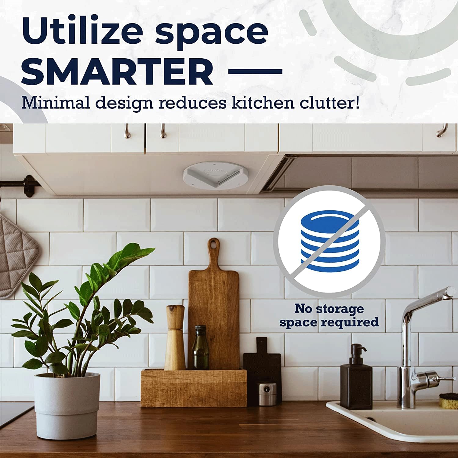 - UNDER CABINET MOUNT: Our jar opener is mounted under your cabinet, so it's out of sight and doesn't take up any counter space. It's always there when you need it, but never in the way.